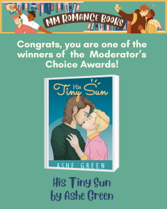 His Tiny Sun was selected as part of the MM_Romance_Books Moderator Choice Awards! I’m so grateful to see my debut alongside all those incredible books 💚